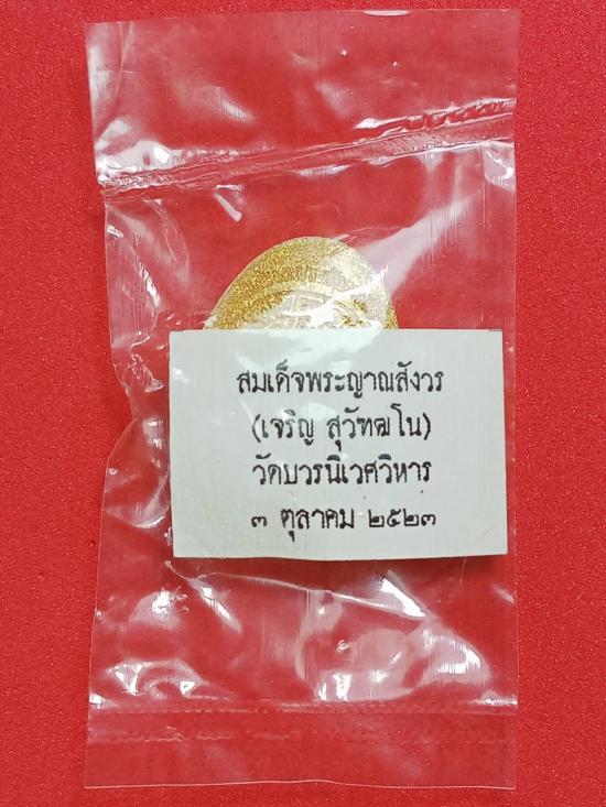 เคาะเดียว ในซองพลาสติกซีลเดิมพร้อมใบฝอย พระปิดตายันต์ดวงเล็ก เนื้อผงธูปกัมมัฏฐานผสมผงพุทธคุณลงทองทั้งองค์ สมเด็จพระญาณสังวร(เจริญ สุวัฑฒโน ปธ.๙) วัดบวรนิเวศวิหาร ๒-๓ ตุลาคม ๒๕๒๓ |
