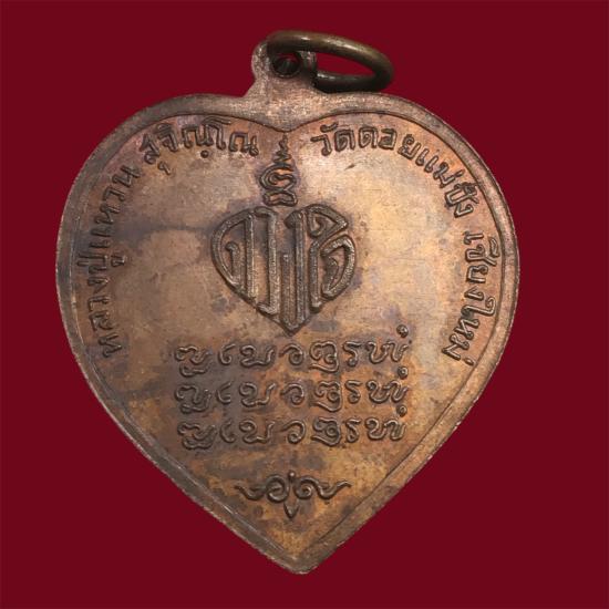 หลวงปู่แหวน วัดดอยแม่ปั๋ง เหรียญหัวใจ เนื้อทองแดง ตอกโค๊ด |