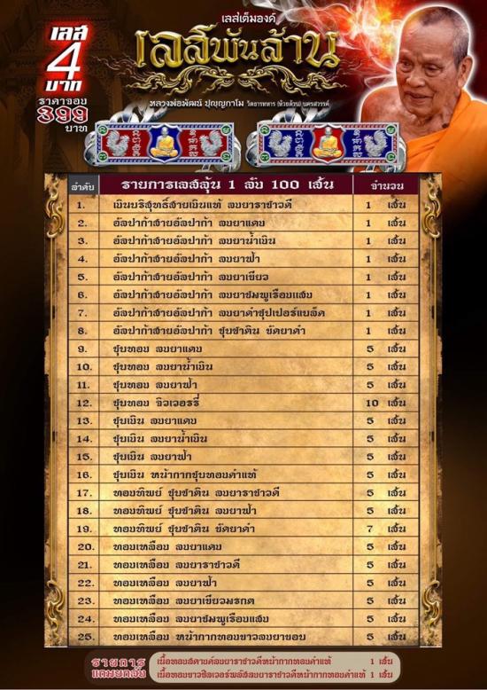 เลส4บาท เลสพันล้าน2 หลวงพ่อพัฒน์ ปุญญกาโม ปี 2564 👉ลุ้นเนื้อ เงินหน้าทองคำ เงินหน้าทองคำ และรายการอื่นๆอีกมากมาย ลุ้นที่ 1 |