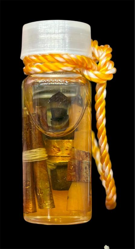 รัก ยม แช่น้ำมันอาถรรพ์ หลวงปู่หงษ์ท่านทำการเรียกจิตวิญญาณเด็กมาสถิตในหุ่นไม้แกะในขวดให้ดูแลรักษาคุ้มครอง ช่วยเหลือผู้เลี้ยงบูชา ให้โชคลาภ เมตตามหานิยม แก่ผู้เลี้ยงบูชา หรือทำตามคำขอของผู้เลี้ยงบูชา