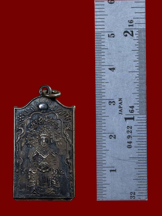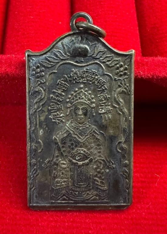 เหรียญเจ้าแม่ทับทิมรุ่นแรก เนื้อเงินเก่า ผิวหิ้ง ห่วงเชื่อม ปี พ.ศ.๒๔๙๔