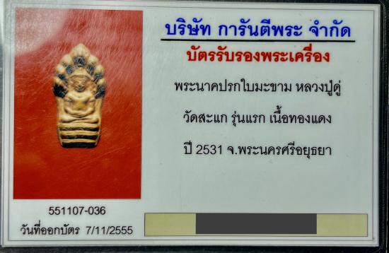 ปรกใบมะขาม หลวงปู่ดู่ วัดสะแก รุ่นแรก ปี 2531 มีโค๊ด+จาร พร้อมบัตรรับรอง