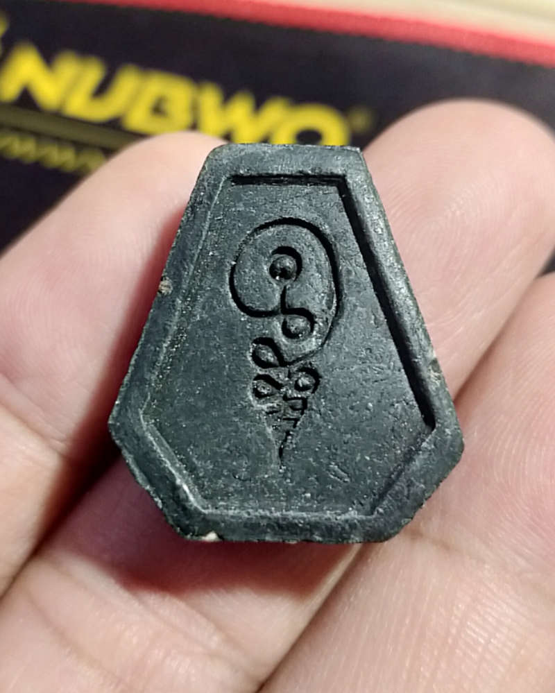พระปิดตา หลวงพ่อแฟ้ม วัดป่าฯอรัญญิกาวาส ชลบุรี เนื้อผงคลุกรักพิมพ์หกเหลี่ยมหลังยันต์นะกินไม่รู้สิ้น ปี2522 |