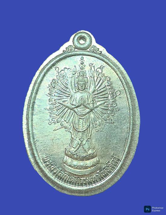 เหรียญเจ้าแม่กวนอิมปางพันมือ วัดประตูป่อง จังหวัดลำปาง.พ.ศ. 2536 เนื้อนวโลหะไม่ตัดปีก |