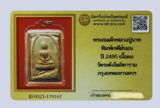 พระสมเด็จหลวงปู่นาค พิมพ์เจดีย์นอน ปี 2495 เนื้อผง วัดระฆังโฆสิตาราม กรุงเทพมหานครฯ น่าบูชามากค่ะ + บัตร DDpra |