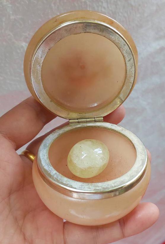 ศิลาทิพย์ รุ่นร่วมยุค คุณแม่บุญเรือน วัดอาวุธฯ พร้อมตลับหินเก่า Alabaster Made in Italy กว้าง 2 นิ้ว |