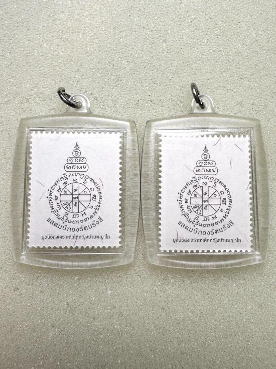 แสตมป์ทองรัตนรังสี_หลวงพ่อคูณ_วัดบ้านไร่ ปี2542 ขนาดบูชา 1x1.5นิ้ว_เลี่ยมพลาสติกมาเดิมๆ 2 รูป |