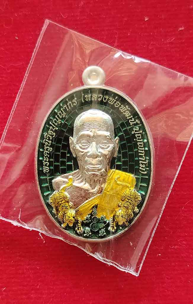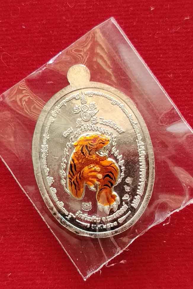 เหรียญสยบไพรีพินาศ หลวงพ่อพัฒน์ วัดห้วยด้วน เนื้อเงิน ลงยา 3สี หลังลงยาเสือรูปไข่ no.680 กล่องเดิม |