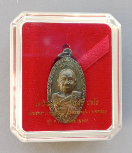 เหรียญใบขี้เหล็กหลัง สธ. เนื้อนวโลหะ หลวงปู่แผ้ว วัดรางหมัน อ.กำแพงแสน จ.นครปฐม ปี2556 หมายเลข2337 พร้อมกล่อง ตามรูป