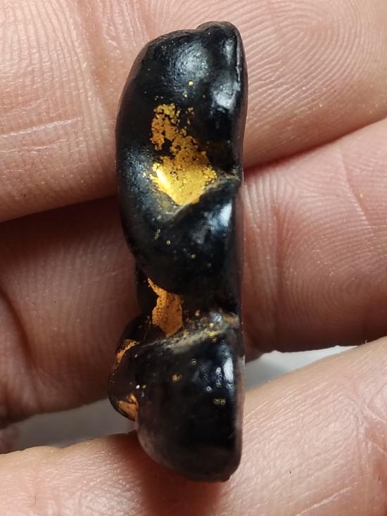 พระปิดตา เนื้อผงลงรัก ปิดทองด้านหน้า เป็นพระพิมพ์ครึ่งซีก หลังนูนอูมเล็กน้อย ไม่ทราบที่ ไม่รู้วัด จากพิมพ์น่าจะไม่ใช่สายวัดสะพานสูง