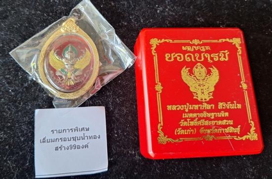 เหรียญพญาครุฑ หลวงปู่ศิลา วัดโพธิ์ศรีสะอาด รุ่นยอดบารมี ลังนำฤกษ์ เนื้อชนวน ลงยาทรงเครื่อง ลงยาปีกครุฑ พื้นแดง เลี่ยมกรอบชุบน้ำทอง No.23 |