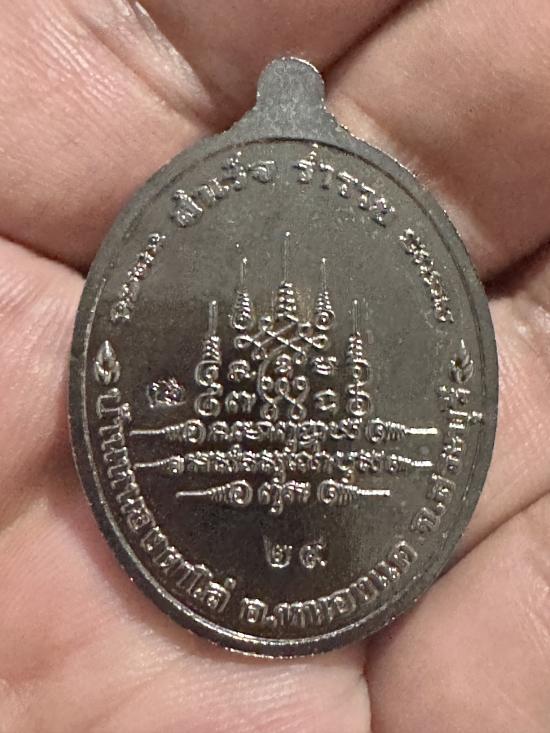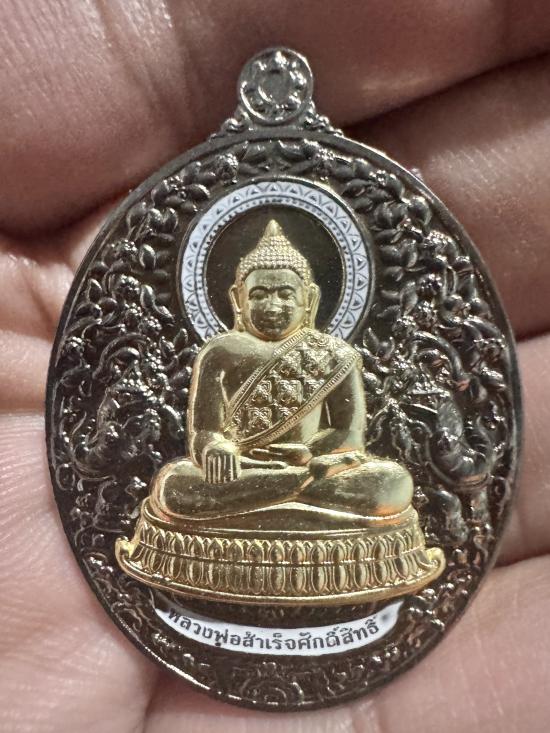 เหรียญหลวงพ่อสำเร็จศักดิ์สิทธิ์ จ.สระบุรี รุ่นสำเร่ำ เนื้อชุบแบล็คโรเดียมหน้ากากชุบทองลงยาป้ายขาว ตอกโค๊ต ตอกหมายเลข 29