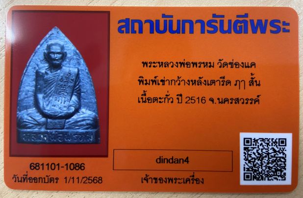 หลวงพ่อพรหม พิมพ์เข่ากว้างหลังเตารีด เนื้อตะกั่ว วัดช่องแค ปี16 จ.นครสวรรค์ มาพร้อมบัตรรับรอง