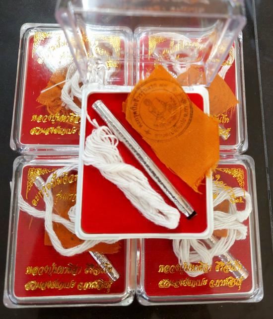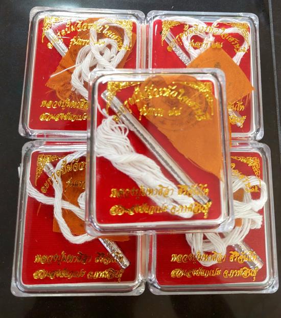 ตะกรุดเงิน ปั๊มจีวรหัวใจเศรษฐีรุ่นแรก 77 ยุคต้น หลวงปู่ศิลา สิริจันโท จำนวน 5 กล่อง |