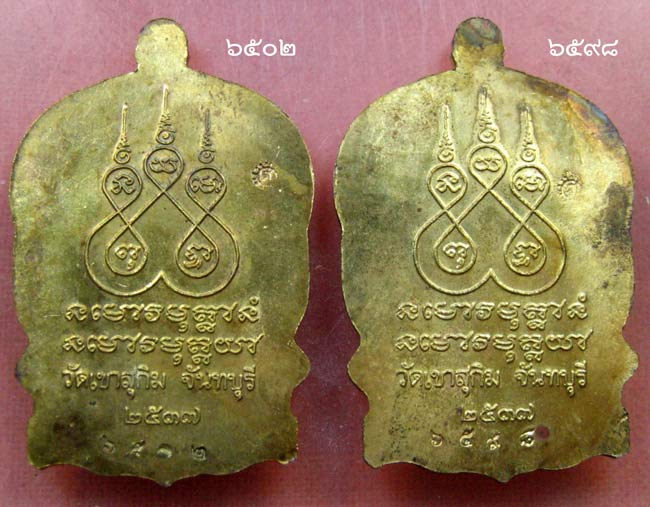 รายละเอียด เหรียญนั่งพาน เนื้อทองเหลือง หลวงพ่อสมชาย วัดเขาสุกิม ตอกโค้ด ส และโค้ด จำนวน 2 เหรียญ หมายเลข ๖๕๐๒ และ ๖๕๙๘ ได้มาจากคนในพื้นที่