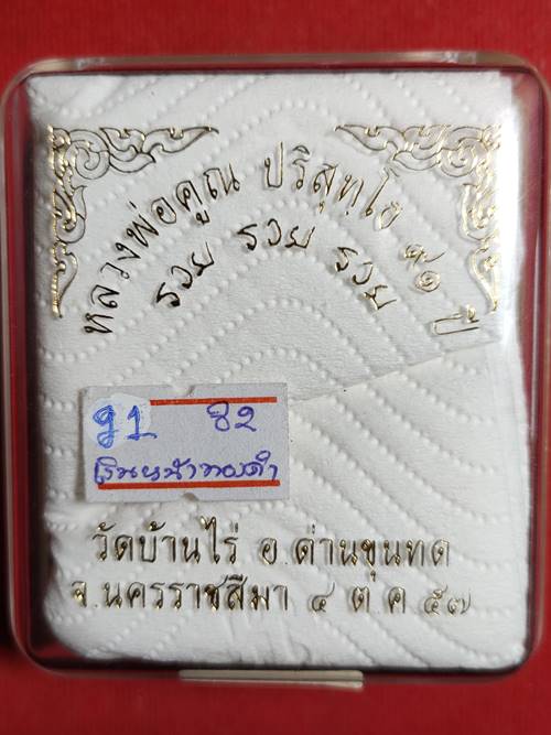 เหรียญหลวงพ่อคูณ ปริสุทโธ 91 ปี รุ่น รวย รวย รวย ออกวัดบ้านไร่ ปี 2557 เนื้อ เงินหน้าทองคำ หมายเลข 82 สภาพสวย เคาะเดียวแดง