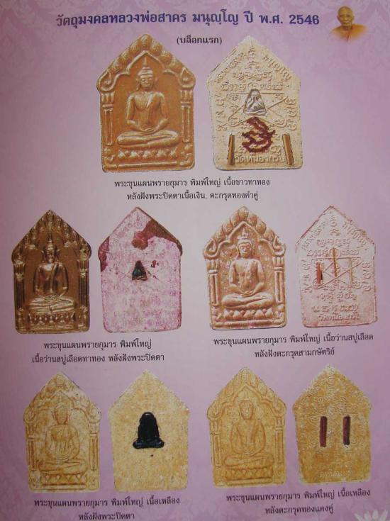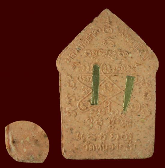 พระขุนแผนผ้าป่า ปี 2546 พิมพ์ใหญ่ เนื้อชมพู ทาทอง ตระกรุตสาริกาเงินคู่ พระสวยตำหนิครบ มีเม็ดมวลสาร หลวงพ่อสาคร วัดหนองกรับ ระยอง ( ขนาดความสูง 4.5 ซม. กว้าง 3 ซม. )
