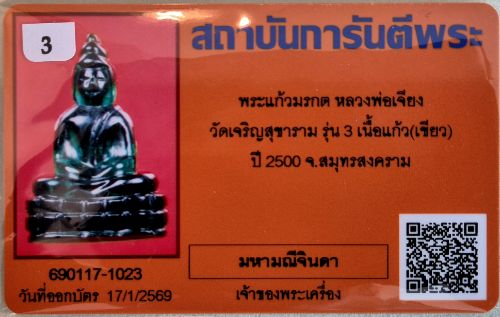 พระแก้วหลวงพ่อเจียง วัดเจริญสุขาราม รุ่น 3 จ.สมุทรสงคราม |