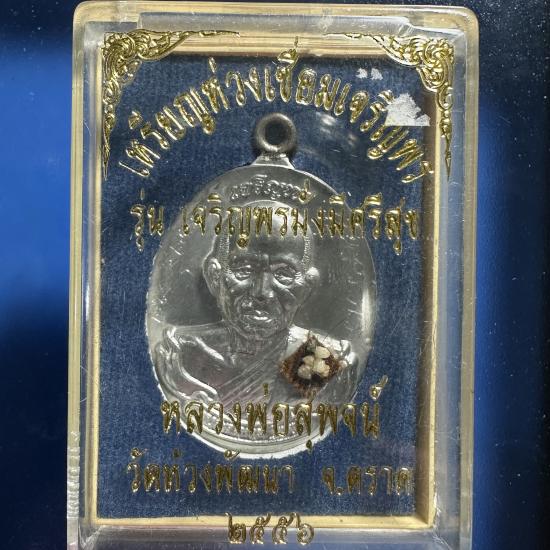 เหรียญห่วงเชื่อมเจริญพร รุ่นเจริญพรมั่งมีศรีสุข เนื้อตะกั่วมีจาร หลวงพ่อสุพจน์ วัดห้วงพัฒนา จ.ตราด สร้างปี 2556 |