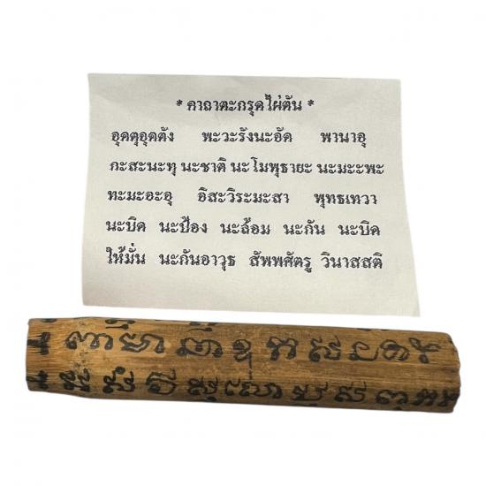 ตะกรุดไผ่ตัน ซึ่งเป็นเครื่องรางของขลังที่ทำจากไม้ไผ่ตัน มีอานุภาพด้านการป้องกันตัวและอยู่ยงคงกระพัน ไม่ทราบที่ |