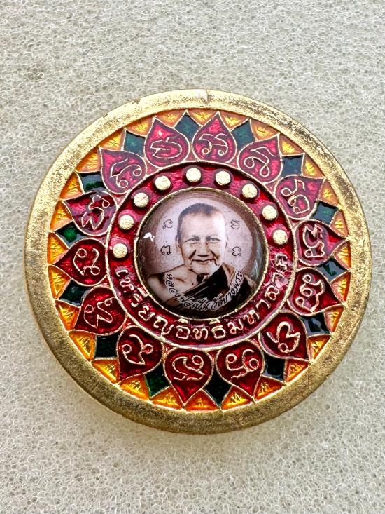 เหรียญ " อิทธิมหาลาภ " เนื้อทองแดงกะหลั่ยทองลงยา หน้าล็อคเก็ต "หลวงพ่อเปิ่น วัดบางพระ |