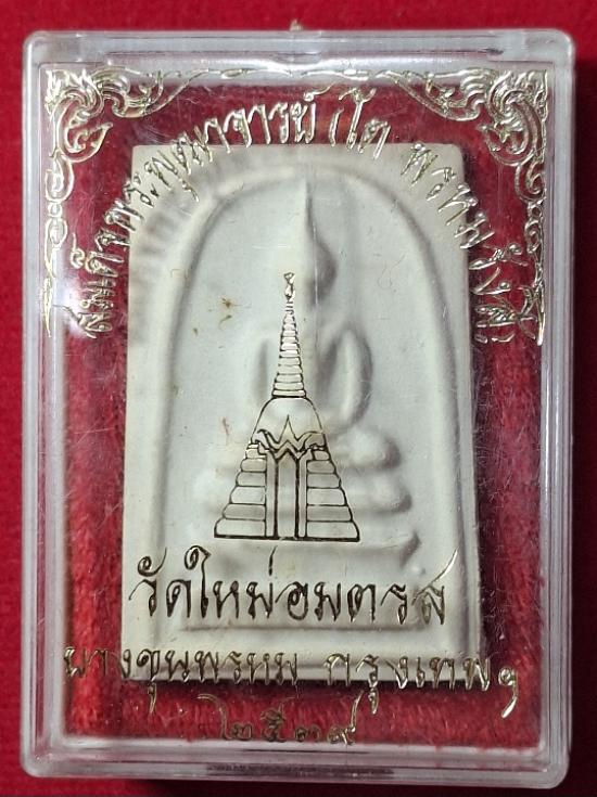 พระสมเด็จบางขุนพรหม วัดใหม่อมตรส บางขุนพรหม ปี2539 เป็นพระเนื้อผง พิมพ์ใหญ่ ขอบหนา พระสภาพสวยเดิมมากๆ100% และที่ด้านหลังปั้มตราชัดเจน และมาพร้อมกล่องเดิมๆด้วยนะครับ |