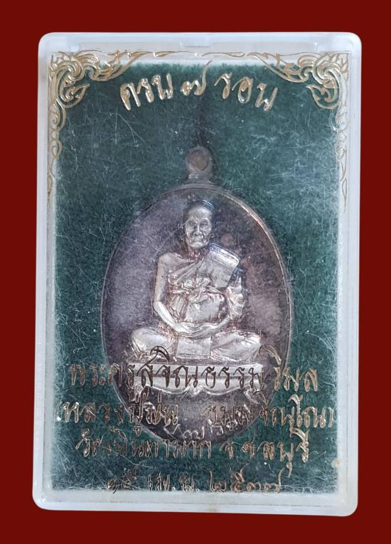 เหรียญ7รอบ เนื้อเงิน หลวงพ่อม่น วัดเนินตามาก จ.ชลบุรี(น้ำหนักเหรียญ 13.8กรัม)กล่องเดิม...