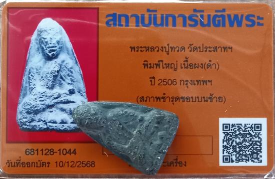 เคาะเดียวแดง+++พระหลวงปู่ทวด วัดประสาทฯ พิมพ์ใหญ่ เนื้อผง(ดำ) ปี2506 มาพร้อมบัตรรับรอง สภาพชำรุดขอบบนซ้าย