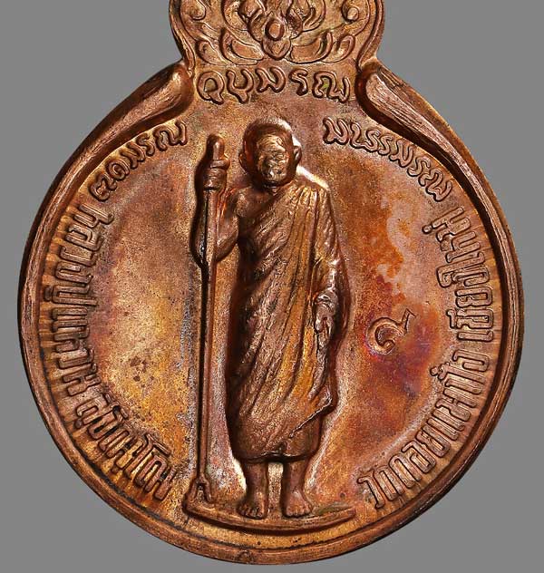 เหรียญหลวงปู่แหวน สุจิณฺโณ ยืนถือไม้เท้า หลังรวมใจ ปี2518 เนื้อทองแดง (สภาพทำความสะอาดผิวมาครับ) |