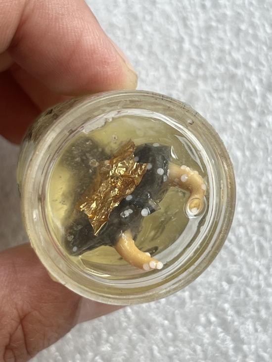 เดือยงูเหลือม ปลุกเสกปิดทอง เลี่ยมกรอบอย่างดี ไม่ทราบที่