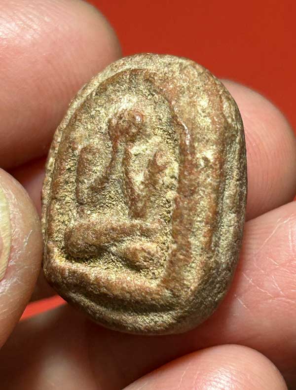 (วัดใจ)พระปิดตาเนื้อผง พิมพ์เล็บมือ(ไม่ทราบที่)เนื้อผงผสม โทนแดง