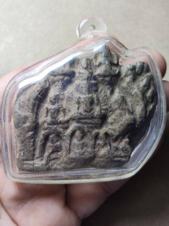 ตำนานพระกรุเมืองลพบุรี พระแผงปาฏิหารย์ เนื้อดิน กรุวัดพระศรี จังหวัดลพบุรี สภาพหักชำรุด เลี่ยมพลาสติกกันน้ำหนาๆพร้อมใช้