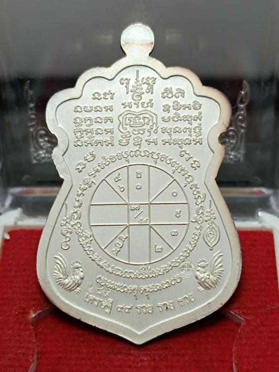 @@ เหรียญเสมา ดวงเศรษฐี๙๙ รวย รวย รวย หลวงพ่อพัฒน์ วัดห้วยด้วน (ขนาดเหรียญสูง 4.0 ซ.ม.) เนื้อเงิน ลงยาลายธงชาติ หมายเลข 289 พร้อมกล่องครับ