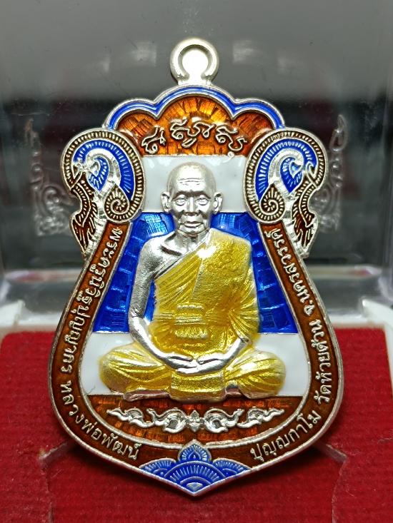 @@ เหรียญเสมา ดวงเศรษฐี๙๙ รวย รวย รวย หลวงพ่อพัฒน์ วัดห้วยด้วน (ขนาดเหรียญสูง 4.0 ซ.ม.) เนื้อเงิน ลงยาลายธงชาติ หมายเลข 49 พร้อมกล่องครับ