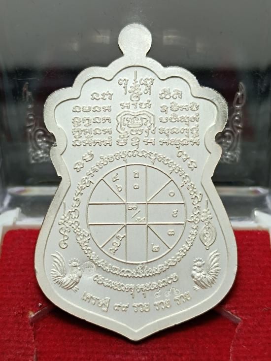 @@ เหรียญเสมา ดวงเศรษฐี๙๙ รวย รวย รวย หลวงพ่อพัฒน์ วัดห้วยด้วน (ขนาดเหรียญสูง 4.0 ซ.ม.) เนื้อเงิน ลงยาสีแดง หมายเลข 896 พร้อมกล่องครับ