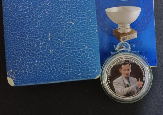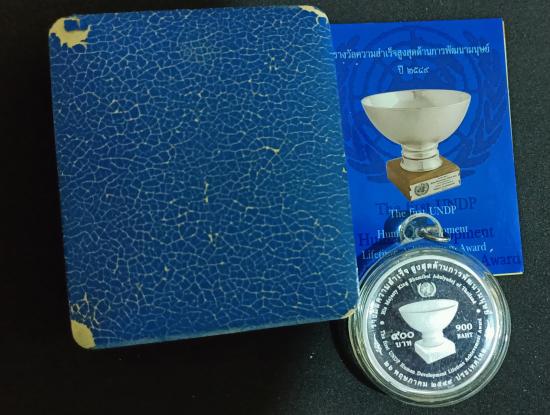 เหรียญ 900 บาท เนื้อเงินขัดเงา รางวัลความสำเร็จสูงสุดด้านการพัฒนามนุษย์ ปี2549 พร้อมกล่องใบครับ