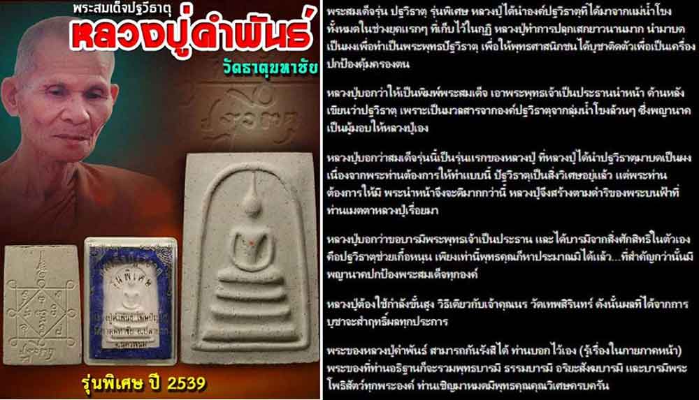 พระสมเด็จปฐวีธาตุ ลป.คำพันธ์ โฆสปัญโญ วัดธาตุมหาชัย ผสมผงปฐวีธาตุยุคต้น ปี 2539