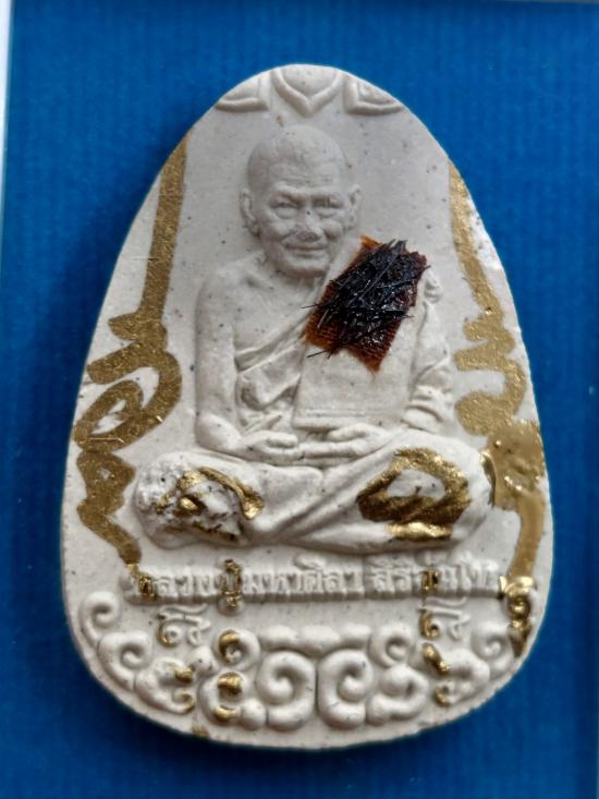 พระผงนั่งเมฆเลื่อนยศ หลวงปู่มหาศิลา สิริจันโท เนื้อขาวผงพุทธคุณจารหมึกทอง |