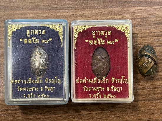 ลูกตรุด นอโม29 พ่อท่านเสือเล็ก วัดควนซาง ตรัง ปี2560 มี2องค์ เนื้อเงินกับทองแดง2ลูก รวม22ลูก