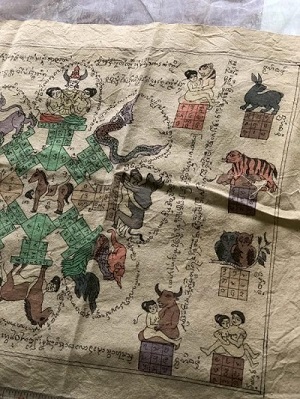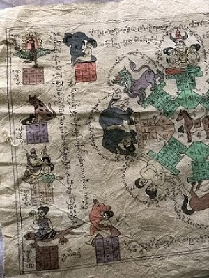 ผ้ายันต์ เขียนมือ ลงสี สายล้านนา ผืนใหญ่ ขนาด23นิ้ว..