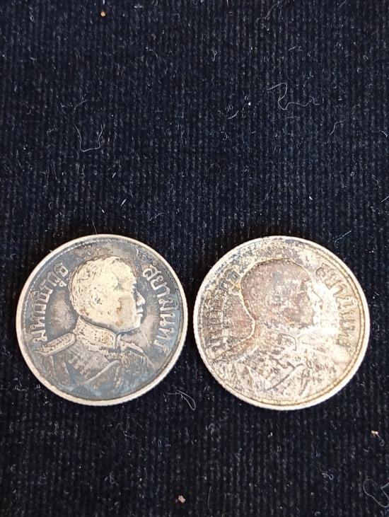 เหรียญ หนึ่งสลึง รัชกาลที่หก จำนวนสองเหรียญ พ.ศ.๒๔๖๒
