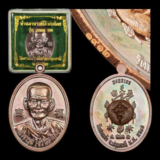 เหรียญ เซียนแปะโรงสี รุ่น มงคล 108 วัดศาลเจ้า ปทุมธานี เนื้อทองแดงผิวมันปู หมายเลข ๑๙๑๒ หลังอุดผงพรหมประสิทธิ์ มวลสาร ๑๐๐ ล้าน จัดสร้างโดย คุณ อั๋น โอกิ