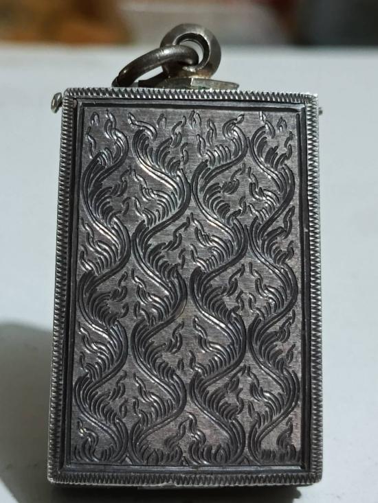 ตลับเงินแท้เก่า ปิดหลังแกะลายกนกเก่า.งานแกะมือ หัวสิงห์ใหญ่ ใส่พระสมเด็จหลวงปู่ภู วัดระฆัง.หนาหนัก 23.01 กรัม สมบูรณ์สนามใบละ 2,500 ราคาขายหลอมกรัมละ 88 เงินแพงมากต่อไปจะไม่มีขายแล้ว