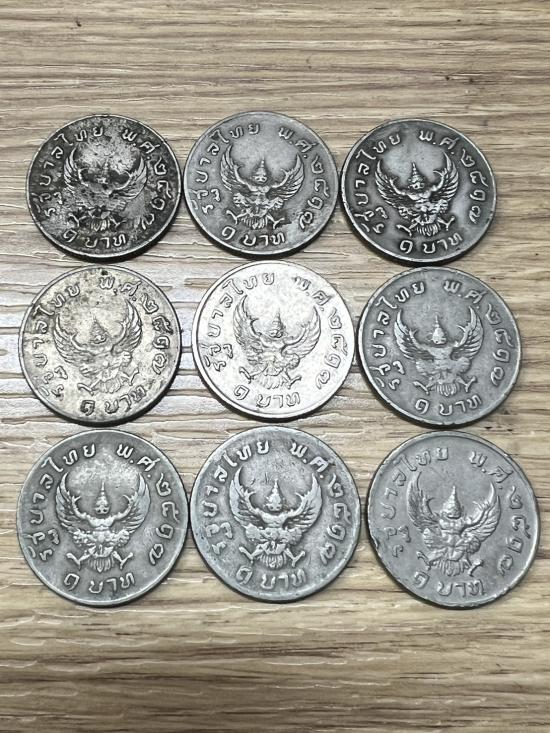+++ เหรียญ 1 บาท มหาบพิธ เหรียญครุฑปี 17 ผ่านใช้ จำนวน 9 เหรียญ +++2 |