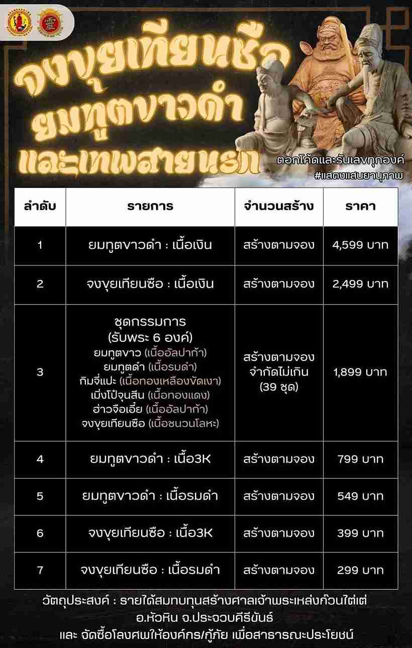 *ที่ฆ้อนมีอีกเยอะครับ เคาะเดียว* ลอยองค์ตั่วแปะ หยี่แปะ(เฮยอู๋ฉาง) = ยมทูตดำ (ไป๋อู๋ฉาง) = ยมทูตขาว เนื้อโลหะรมดำ จัดสร้างเพียง 60 ชุดเท่านั้น แบ่งปันราคาจอง |