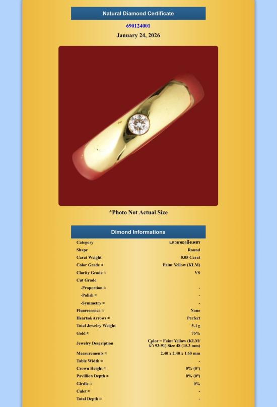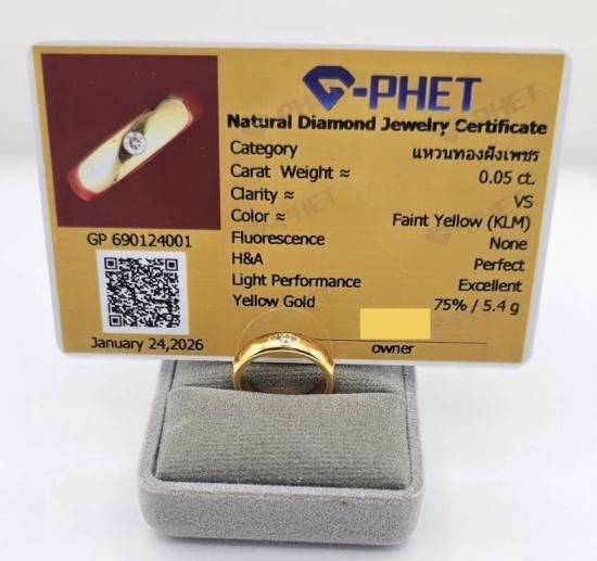 แหวนทองฝังเพชร 0.05 ct. Size 48 (น้ำหนัก 5.4 กรัม 75%) **พร้อมบัตรการันตีเพชร**