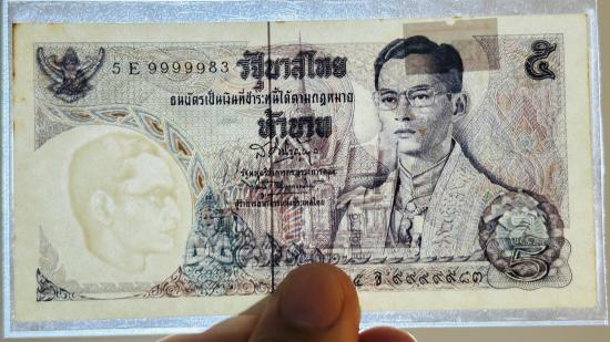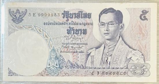 ธนบัตร 5 บาท ร.9 เลขสวยๆ 9999983 ไม่ผ่านการใช้งาน