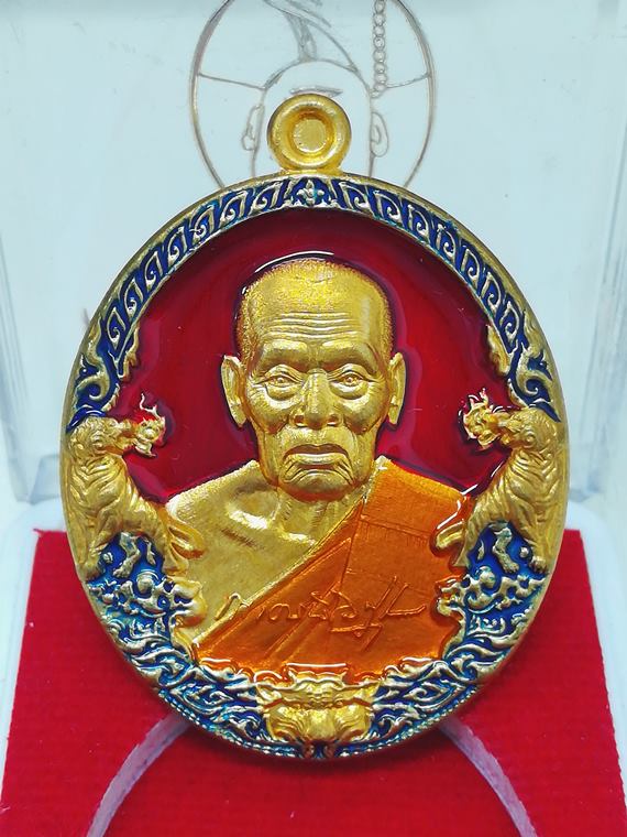 @@ เหรียญ รุ่น ราชาพยัคฆ์ (เสือ2) หลวงพ่อพัฒน์ วัดห้วยด้วน จ.นครสวรรค์ เนื้อทองสัตตะ ลงยา 3 สี (พื้นแดง,ขอบน้ำเงิน,ลงยาจีวร) หมายเลข 143465 พร้อมกล่องเดิมครับ