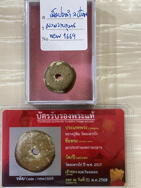เม็ดใหญ่ หนา หายาก เนื้อผงพรายกุมาร เนื้อเดียวกับขุนแผนราคาหลักล้าน สร้างปี 2517 วัดละหารไร่ รับประกันพระแท้ ไม่หักไม่ซ่อม พร้อมบัตรรับรองพระแท้จากพี่หมีพูห์ปู่ทิม กรรมการสายของสมาคมโต๊ะหลวงปู่ทิม