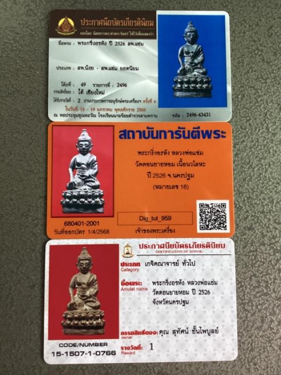 พระกริ่งอรหัง หลวงพ่อแช่ม วัดดอนยายหอม เนื้อนวโลหะ หมายเลข #18 มาพร้อมบัตร GPra และที่ 2 งานสมาคมที่สามพราน